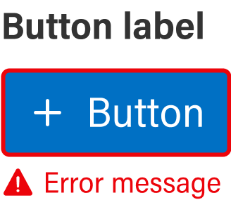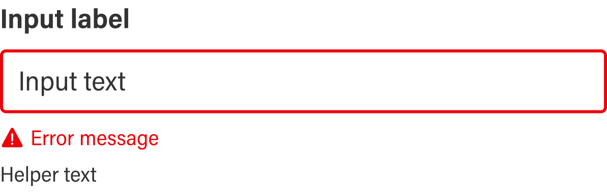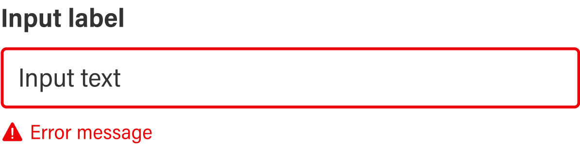 When a user inputs an unexpected value in the input field, an error message will appear below the field followed by a 16 pixels error icon. Both the icon and the error text are in red. The input field frame is displayed in red.