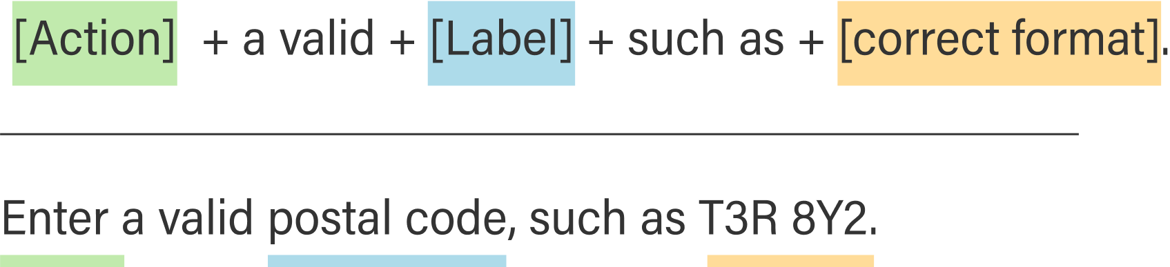 Follow the templates and examples below for common errors to create an error message that fits your context.