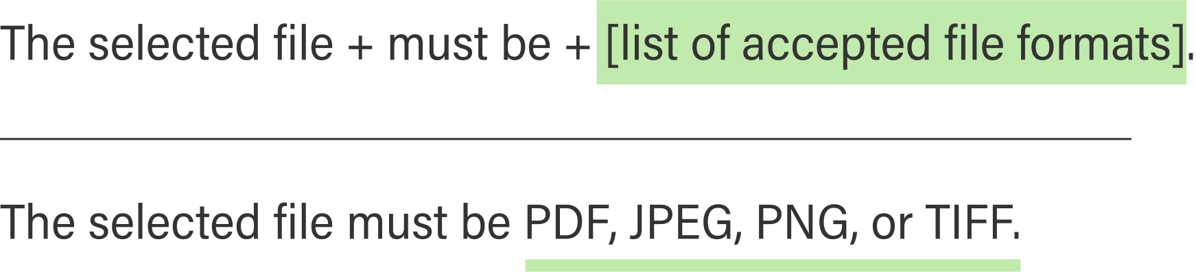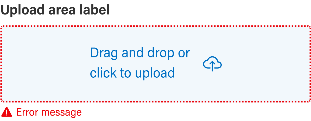 When there is an error with the requested file, error message appears below the file upload button or area.